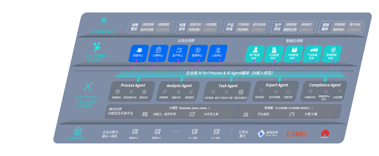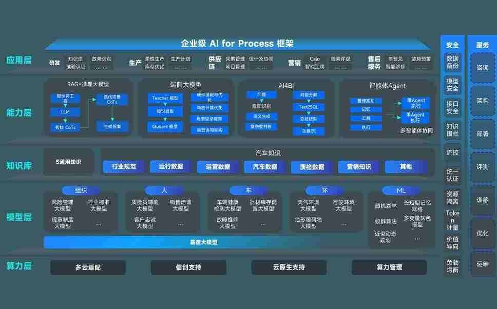 大玩家问学智车解决方案是一套基于AI技术的汽车行业智能化系统,,,,覆盖从底层算力到顶层AI应用的全栈方案。。方案由算力层、、、、模型层和应用层组成:算力层,,,,方案支持多种一体机配置,,具备云端灵活部署、、、多云适配以及动态优化计算资源的能力;模型层,,,,大玩家问学平台版提供了企业级AI应用一站式构建与管理平台,,,支持基于后训练强化技术的汽车企业专属模型的训练、、评测和运营;应用层,,,大玩家问学DeepSeek版提供包括超级员工、、、智能招采、、、智能营销、、、、智能客服、、、、AI for BI等一系列解决方案,,,可助力汽车行业实现数字化转型,,让管理更智能、、响应更敏捷。。